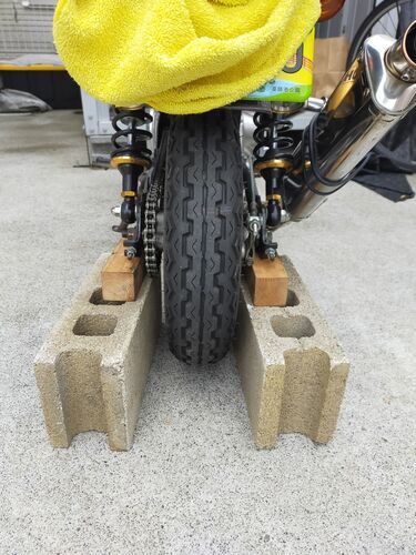 私のくまモンキーは、ノーマルホイールです。 ノーマルのホイールは、2.5jの鉄のホイールです。そこで今回は、リアホイールを交換します。予定では、 フロント3.5j リア4j の幅にしたいのですが、残念ながら4jの在庫が無いので3.5jを一個入手して、取り敢え…